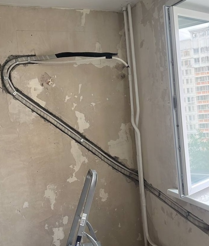 Этот вариант монтажа идеально подходит для тех, кто делает ремонт в новой квартире или обновляет старую. Он позволяет разделить работы на два этапа, привязав их к стадиям ремонта, и избежать повреждений чистовой отделки.